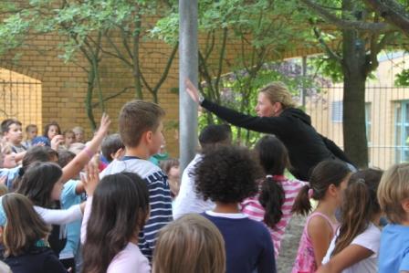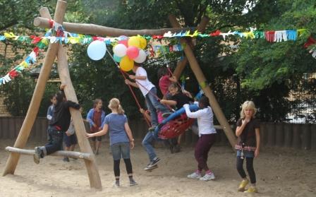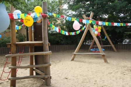 Das Spielgerüst entstand und wurde am Freitag, den 10.08.2012 von Herrn Hundt, als Vorsitzenden des Greenhorn Fördervereins an Frau Wieland für die Schule übergeben. Fröhlich wurde es von den Kindern mit den Erzieherinnen mit einem kleinen Programm begrüßt